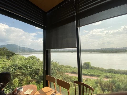 한강 수변 바로 옆에 위치해 물소리와 함께 커피 마시는 명소로 손꼽힙니다. 특히 비 오는 날 혹은 댐 방류 시기 풍경이 장관입니다.