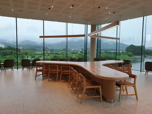 북한강 뷰가 매우 아름다운 드라이브 성지 스타벅스입니다. 자리 경쟁이 심하지만, 전망 만족도는 최고 수준입니다.