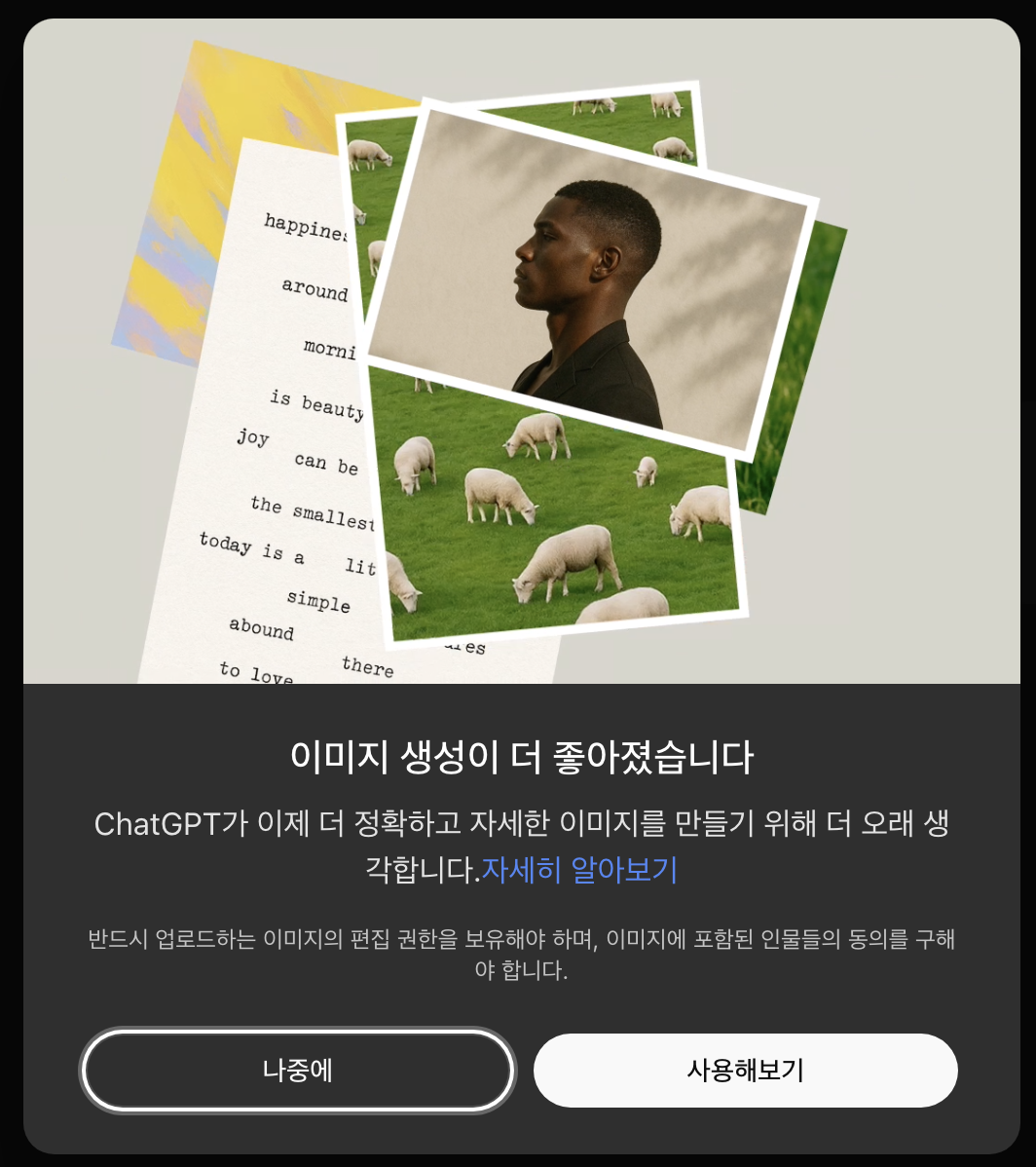 - 챗GPT Plus 계정 (GPT-4 Turbo 이용, 무료로 사용할 경우에 하루 이미지 생성양이 한도가 있습니다)
