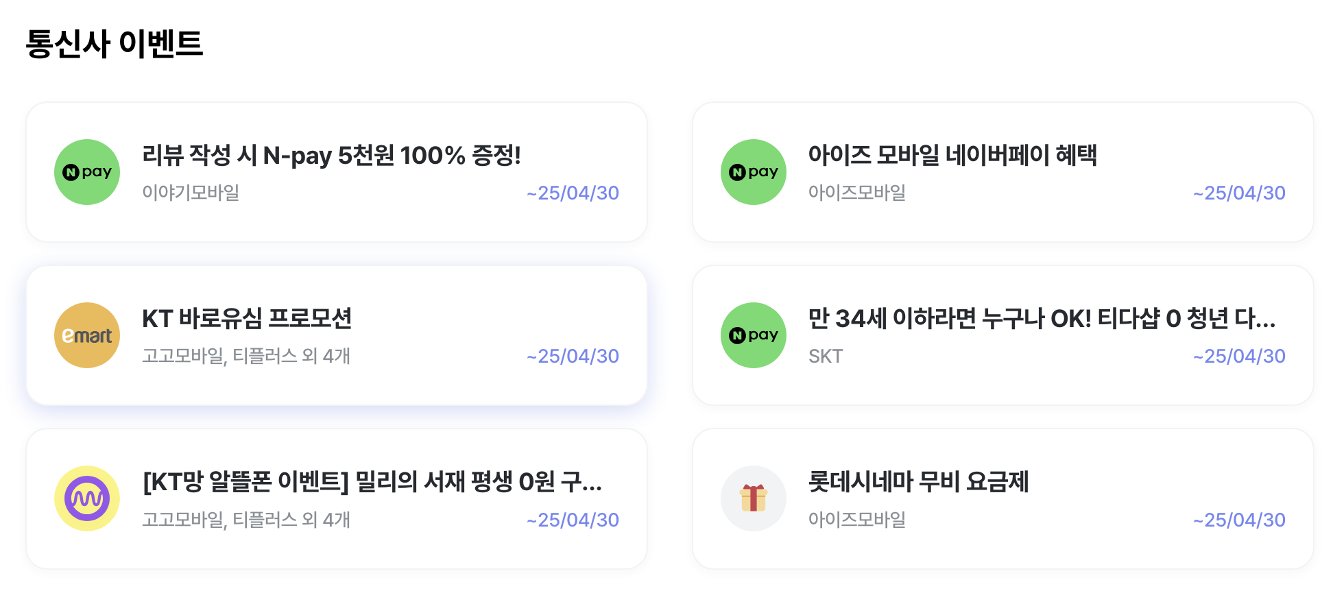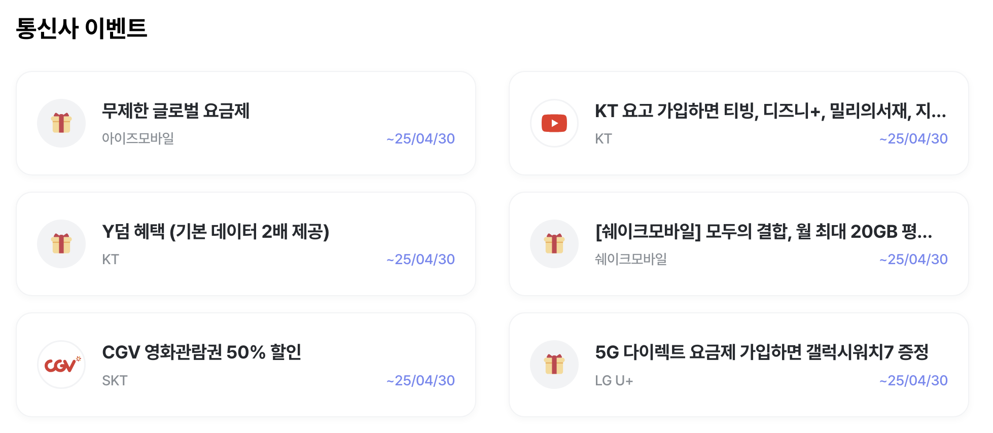 - 일부 KT/LG U+ 본사 서비스는 존재하나, 알뜰폰(MVNO)에는 미적용