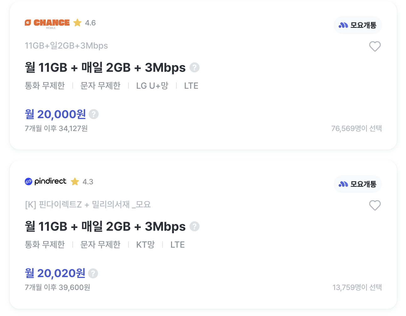| 항목 | SKT망 알뜰폰 | LG U+ 망 알뜰폰 |